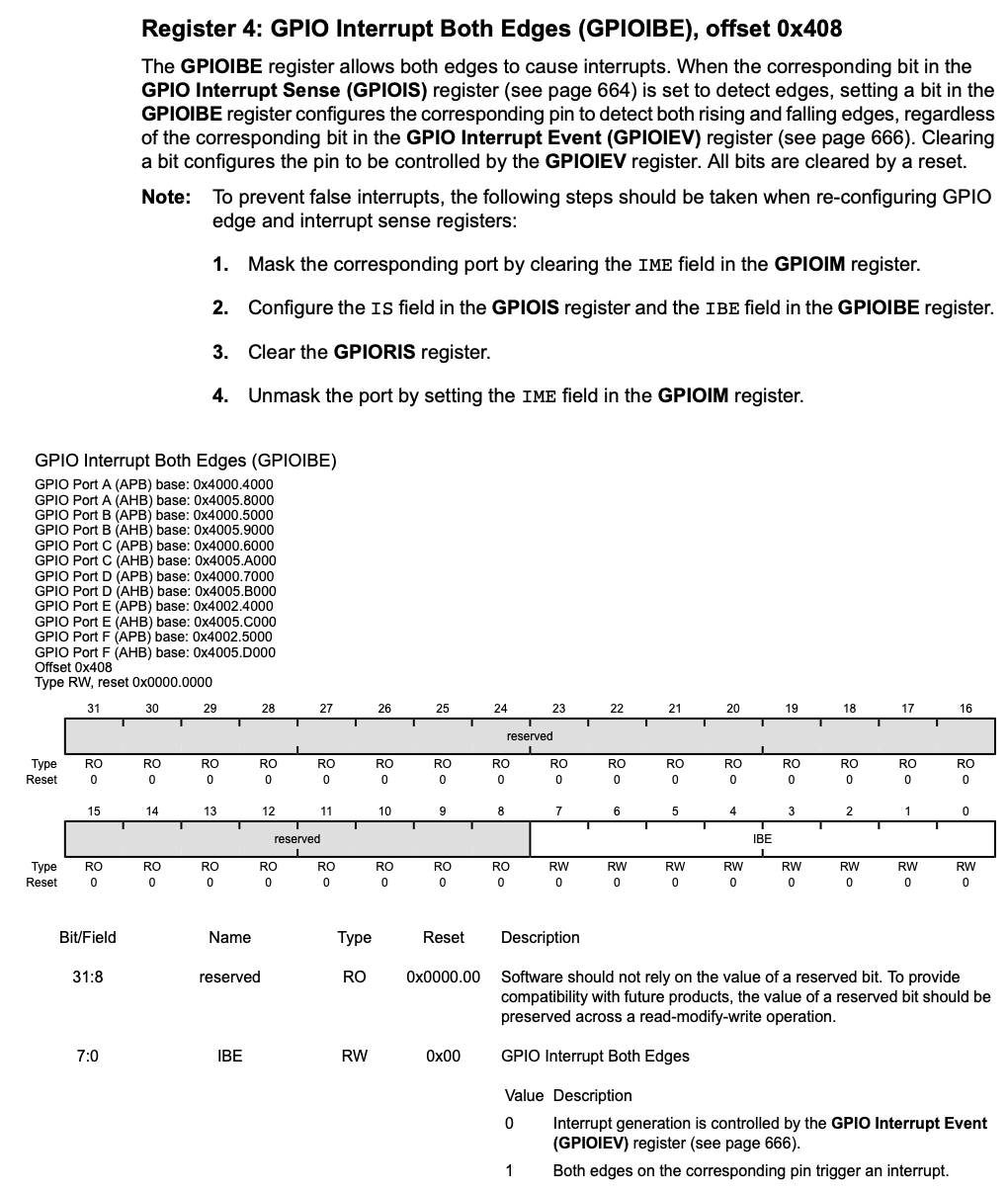 GPIOIBE(Interrupt Both Edges) register: