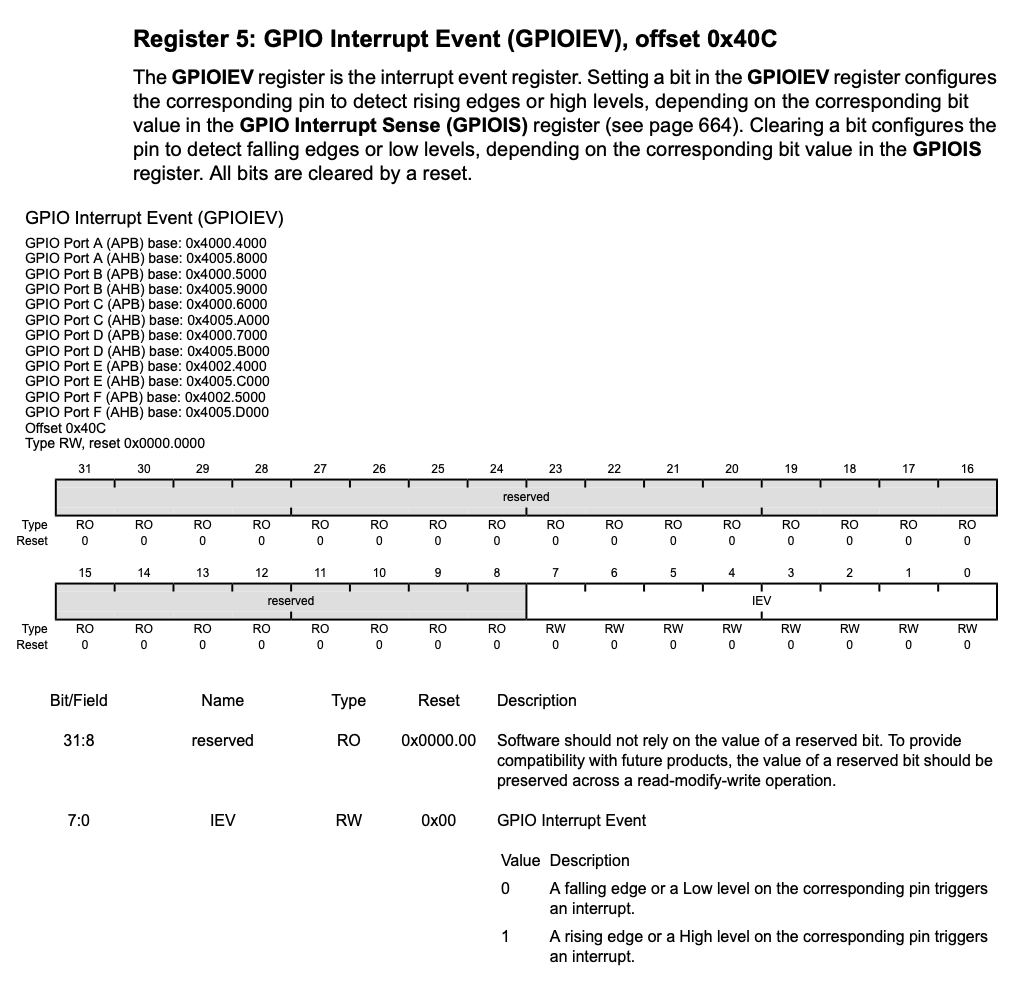 GPIOIEV(Interrupt Event) register: