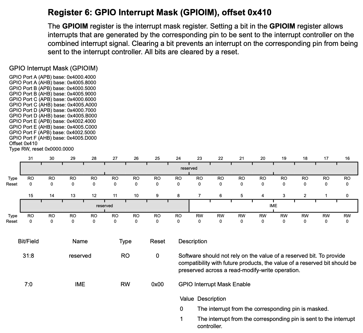 GPIOIM(Interrupt Mask) register: Interrupt enable/disable을 설정하는 register.