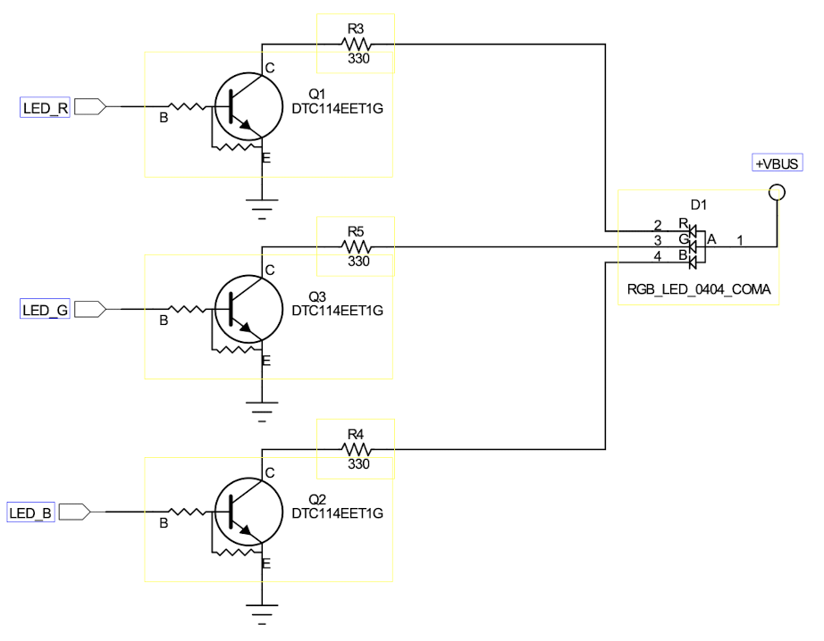 각각의 LED는 'DTC114EET1G'라는 NPN형 TR에 의해 제어되며 TR의 base에 HIGH signal을 주면 collector에서 emitter로 전류가 흐르게 된다.
