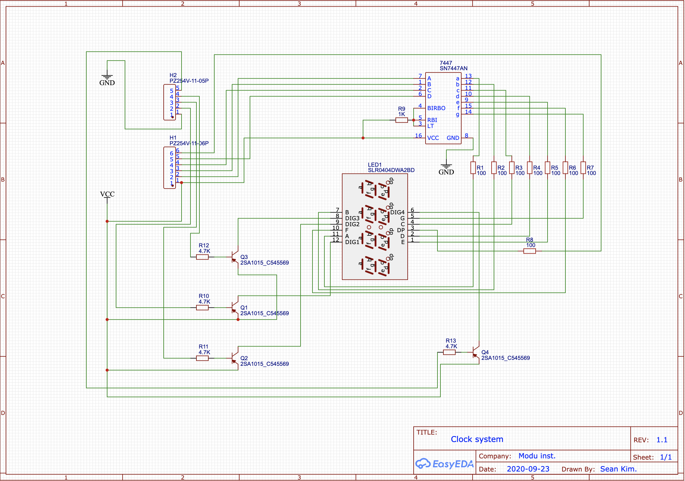 [PCB Fabrication 02] - 4_Digit 7_Segments with SN7447AN Rev.1.1