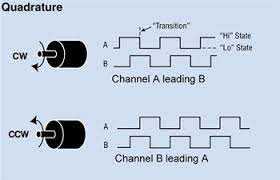 위의 그림과 같이 quadrature wave form으로 신호가 생성되므로 Quadrature encoder라고 부른다. 이 encoder는 두가지 신호를 내보내는데 만약에 시계방향으로 도는 경우 Channel A의 신호가 Channel B의 신호보다 앞섦을 통해 현재 모터가 시계방향으로 돌고 있음을 체크할 수 있다. 그리고 wave length를 통해 어떠한 속도로 돌고 있는지도 알 수 있다.