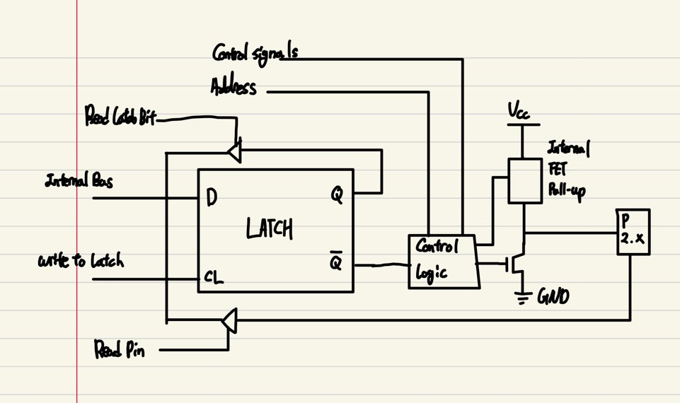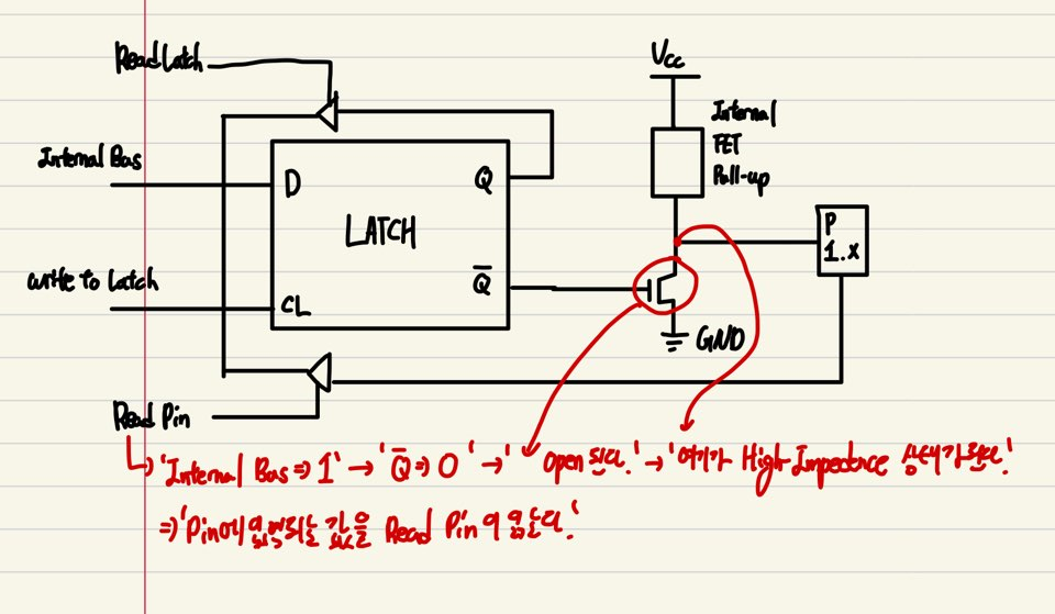Port 0은 외부 program & data memory에 접근할 때 multiplexed low-order address/data bus로 사용할 수 있다. 이 모드에서 P0는 내부 풀업을 갖는다.